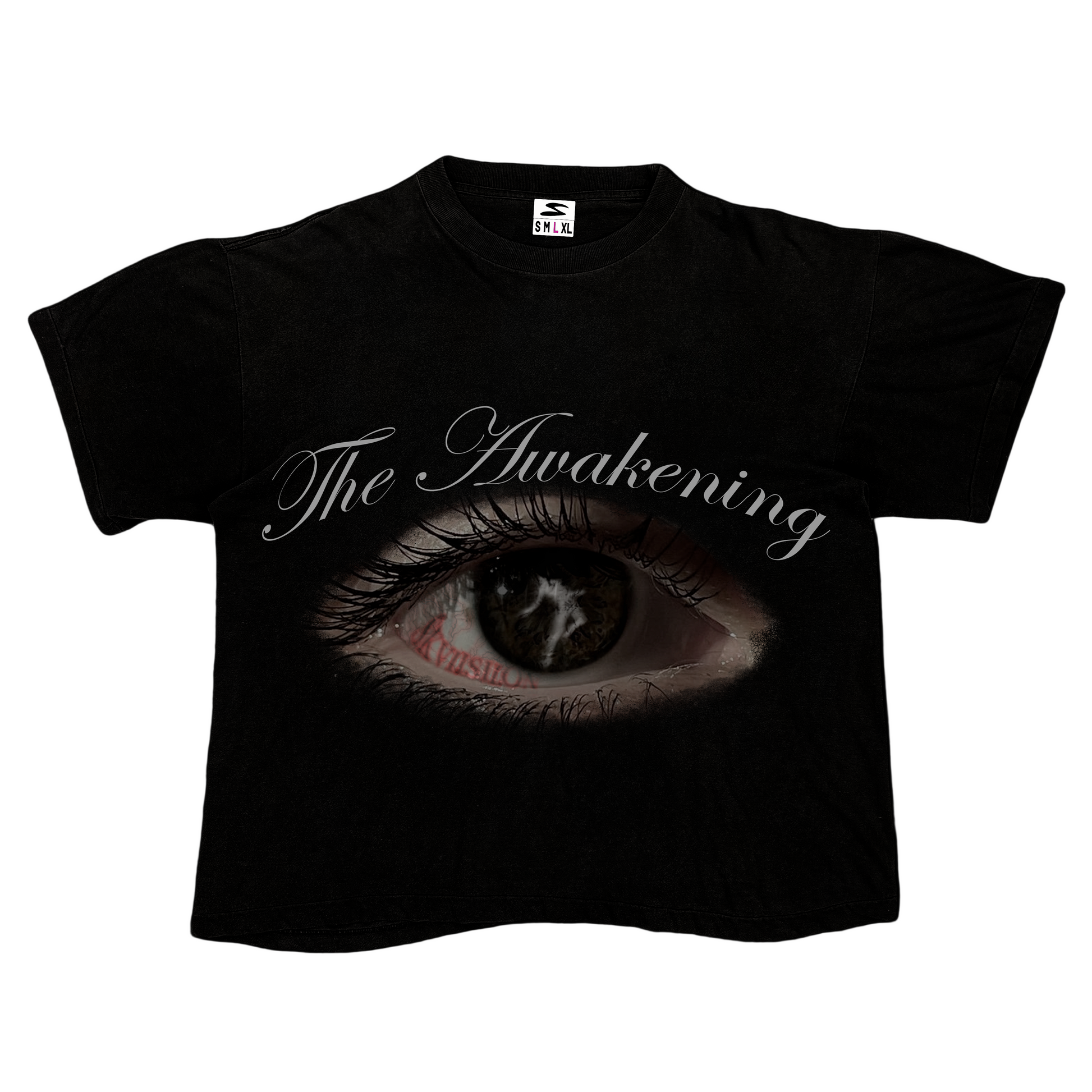 Presenta un estampado frontal de un ojo, símbolo del despertar, la conciencia y la visión propia.